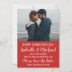 Valentine's Day is a perfect day to share your happy news. Wish them Happy Valentine's Day and ask them to save your date. Your favourite couple's photo is featured at the top of the red card. Then your Happy Valentine's Day greeting and Save the Date Request follows. The back of the invitation features small micro white hearts on red.