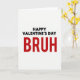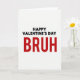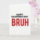 This greeting card keeps things simple with a plain white background and a big message front and center. Near the top, it says “HAPPY VALENTINE’S DAY” in black, all-caps block letters that look like a straightforward sans-serif font. Below that, the word “BRUH.” takes over most of the lower half in huge red, all-caps letters, making it the first thing you notice. The contrast between the black text above and the red text below gives the card a funny, modern twist on a classic holiday greeting. There aren’t any characters or extra objects in the scene—just the text—so the humor and attitude come through clearly. It feels like something you’d send to a friend, a partner, or someone you care about who’d laugh at the casual tone ❤️💌. If you want, you can pair it with a small treat like 🍫 and let the message do the talking. Hope it helps you share a little love and appreciation this Valentine’s Day.