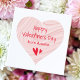 Heart shaped sticker with a soft blush pink satin agate swirl texture and red text "Happy Valentine's Day" and custom name. Use as envelope seals, stickers for gifts and favours, product packaging, crafts and scrapbooking etc