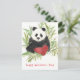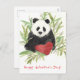 Happy Valentine's Day greetings decorated with a fluffy panda in a patch of bamboo with his bright red valentine heart hand painted with watercolor.