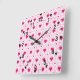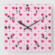 Happy Valentine's Day Hearts Pattern Pink Red Square Wall Clock