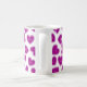 This charming mug showcases a rich pattern of deep purple hearts, each surrounded by a soft, glowing blur that gives the design a warm and dreamy feel. The small XOXO detail inside every heart adds a gentle, affectionate message without overpowering the overall look. The bold color creates a striking contrast against the white background, making the mug eye-catching and stylish.