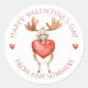 Happy Valentine's Day Kid's Watercolor Moose Classic Round Sticker