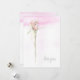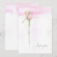 Happy Valentine's Day greetings featuring "love you" and decorated with a single stem pink rosebud hand drawn with pencil and painted with watercolor on a blush delicate pink watercolor wash background. On the back is a pink watercolor wash.