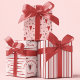 This cute pink, red and white Valentine's Day wrapping paper sheet set features 3 unique designs: