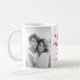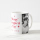 Coffee mug featuring the text "Happy Valentine's day" in red surrounded by retro stars and the couple's names below. On the sides are two photo templates.