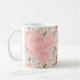 Cute wildflowers floral pink pattern with a big heart Happy Valentine's Day mug with a trendy coral script for mom, grandma, teacher, children, a romantic girlfriend, or wife.