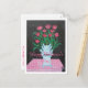 Happy Valentine's Day: You Make My Heart Bloom postcard original oil painting by artist, Susan Payne-Trutna. This artwork features pink/red tulips in a traditional tulipiere vase on a pink check tablecloth. Text can be personalised on front and back of postcard. Matching Valentine's Day tulip postage is available...