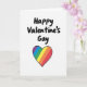 This greeting card features the message “Happy Valentine’s Gay” in thick, hand-lettered black script across the top center. The letters look loose and handwritten, with a friendly, casual flow that feels personal. Under the text sits a large heart outlined in black, drawn with slightly uneven lines that give it a handmade look. Inside the heart are horizontal rainbow stripes in purple, blue, green, yellow, orange, and red, standing out clearly against the white background. The simple white setting keeps all the attention on the message and the pride heart, tying the design to love, acceptance, and friendship. Overall, it feels upbeat and welcoming, like a direct note of support you’d be happy to give or receive ❤️💌.