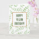 This "Happy Vegan Birthday" card features a leaf design with a gold border.