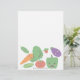 Featuring vector drawn cheerful vegetables, including a carrot, peas, radish, pepper, eggplant, and tomato.