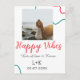 Happy Vibes holiday couple name date wedding red Postcard