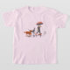 Happy walk, girl is taking pack of dogs for a walk under rain. T-shirt design for girls.