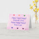 Colourful hearts are painted on a blended pink background, with, Happy! Happy! Happy! We're all in God. Happy! Happy! Happy! God's in all, printed on the front of greeting cards. The inside verse says, Sharing the connecting Spirit in which we all live and breathe.