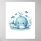 This charming artwork captures a heartwarming scene of friendship in the deep blue sea. The happy whale, surrounded by its little fish friends, is sure to bring a smile to your face. The soft colours and playful details make it a delightful addition to any child's room.