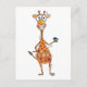 Happy Whimsical Giraffe Drinking Coffee Postcard