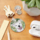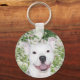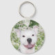 White pitbull terrier with a big happy smile on the face and wildflowers in the background dog lovers key chain
