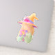 The stick looks amazing. Unfortunately, it would not stick on our suitcase as it was textured. When we found a non-textured (smooth) suitcase, the sticker stuck and looks great. The printing looked awesome.