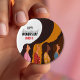 Celebrate unity and sisterhood with this original artist-painted button for International Women's Day. Featuring a diverse group of women in profile, this design showcases long, wavy hair flowing in vibrant sunset tones and elegant colorful floral dresses. A boutique wearable art piece that symbolizes the strength and beauty of women standing together.
