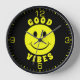 Good Vibes - Cool yellow happy smiling face. Drive the message down with a bold yellow on black design. Good vibes is a slang phrase for the positive feelings given off by a person, place, or situation. It evoked positive, safe, happy sensations. Sending good thoughts / positive energy, and it can also mean 'Right On!' and 'Go for it!'. An expression for many occasions.