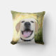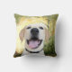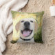 Young yellow labrador retriever with a big happy smile on his face photo dog lover throw pillow