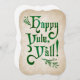 Elegant and fun "Happy Yule, Y'all" quote Christmas card in green on parchment background. Perfect for southern Christmas or pagan winter solstice.