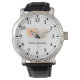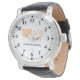 I had two concerns when ordering this watch - one that the watchband didn't look that glittery and two that the dial would be too large. Neither was a problem at all. The watch band is nice and glittery for a touch of bling. As to the size, I have small bones so I tend to like smaller looking accessories and I am quite comfortable with this. Neither too large or too small. The outside edge to edge on the dial is 1 1/4" the inside image is 1 inch.