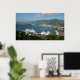This is a view from the overlook at the cable cars on St. Thomas. You can see the harbour with the cruise ships and sailboats. The Caribbean water is a beautiful deep blue. Check out our store for more beautiful tropical scenes from Caribbean cruising. This picture is also featured as the widescreen wallpaper "Harbour at St. Thomas" from www.mlewallpapers.com.