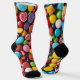 These crew socks are as sweet as candy that's right there is all kinds of hard candy on the socks and the candy is colorful.