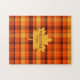 This difficult jigsaw puzzle is a tribute to fall. The design features a colourful fall plaid design with a fall leaf in the centre. The words, "Welcome Fall" appear in the centre of the leaf. This is a hard, but fun puzzle to put together in varying sizes. Copyright Kathy Henis