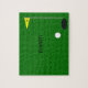 This jigsaw puzzle makes a great gift for the golfer during the off season. He or she will have some time to finish this hard puzzle which is a green with a flag and a hole with the name of the golfer. Copyright Kathy Henis