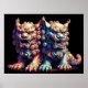 Hard Pastel Drawing Chinese Foo Dog Pair Poster