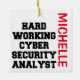 This is a unique ornament featuring the quote "Hard Working Cyber Security Analyst", perfect for any hard working cyber security analyst.