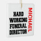 This is a unique ornament featuring the quote "Hard Working Funeral Director", perfect for any hard working funeral director.