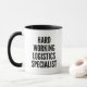 This text design featuring the phrase "Hard Working Logistics Specialist" is perfect for any logistics specialist that works hard.