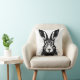 This throw pillow features a black line art illustration of a creepy hare staring at the viewer.