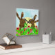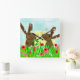 Such a pretty colourful picture of two march hares and a dragonfly in a Summer meadow of green grass, red poppies, and pink clover flowers.. Feel free to hit customise to add a personal name at no extra cost. A decorative wall clock for fans of wildlife, nature and cute animals.