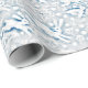 Wrapping paper featuring cute winter pattern in white and blue, rabbits jumping on snow field. Faux textured seamless design elaborated from handmade wool painting. Lovely gift for winter holidays, fits great for nursery or children room decor.