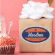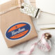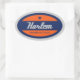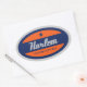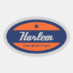 Oval signage design featuring the neighbourhoods of New York City. Official orange and blue colours of NYC. Harlem, Manhattan.