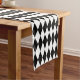 This table runner features a simple black and white harlequin pattern. Designed by world renowned artist ©Tim Coffey.