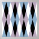 A mid-century inspired design featuring a harlequin diamond pattern in blue, dusty lilac, black and white.