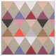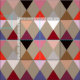Mid-Century Modern Harlequin pattern of made of stacked triangles forming diamond shapes - shades of pink, buff, wine, grey and taupe on a light taupe tan background