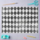 "Harlequin Ephemera Black n White Wood Decoupage, heavy weight tissue paper for crafting and furniture decoration." Rustic elegant black and white painted Harlequin diamond pattern that has been distressed and work over a white crackle finish wood background. Script ephemera handwriting overlay finishes the design. Painted in watercolor and graphically designed by internationally licensed artist and designer, Audrey Jeanne Roberts, copyright.