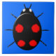 This awesome tile features a black harlequin ladybird with four irregular shaped red spots on its back, six legs and two white spots that look like eyes on the front of its head. Originally an Asian species it is now living and breeding in Europe and America. It has been put on a blue background but also looks great against other colour backgrounds. You can change the background colour and other aspects of the design by clicking on the “customise it” button.