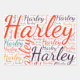 Harley. Show and wear this popular beautiful female first name designed as colourful wordcloud made of horizontal and vertical cursive hand lettering typography in different sizes and adorable fresh colours. Wear your positive american name or show the world whom you love or adore. Merch with this soft text artwork is a great present, not only in womens history month, or birthday gift.