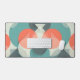 A seamless geometric abstract featuring overlapping translucent circles, squares, and triangles arranged in a harmonious palette of teal, coral, ivory, and charcoal. The design showcases balanced symmetry with subtle drop shadows, creating a soft, elegant visual perfect for backgrounds, modern decor, or sophisticated graphic projects.
