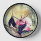 Harmonic Pink Flowers Black Leaves Abstract Clock