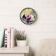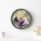 Harmonic Watercolor Pink Flowers Black Leaves Abstract Painting Clock.