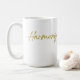 Enjoy your morning beverage of choice, inspired by this uplifting message in an elegant gold script font.