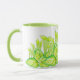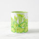This combo mug's design is based on a painting titled 'Harmony in Green' by me. It is set in a Hosta garden, on the brink of Summer when the leaves are in different stages of evolution, from tightly curled infant leaves to fully unfurled mature leaves. It has been coloured in many shades of green to celebrate the confluence of Spring and Summer.